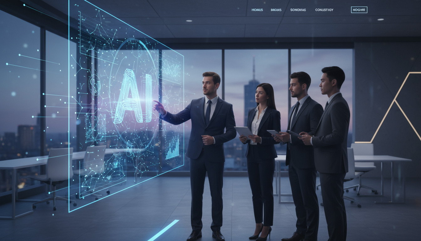 管理会計、ウェブコンサルティング、AI活用コンサルティングを行っている会社のウェブサイトのトップページに相応しいイメージ画像を作成してください。英語や文字やボタ